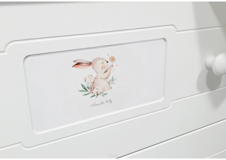 - Na blacie komody można założyć znajdującą się w zestawie nakładkę ,która powoduje poszerzenie blaciku i stanowi funkcje przewijaka z ogranicznikami a co za tym wpływa na bezpieczne i swobodne przebieranie maluszka