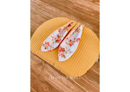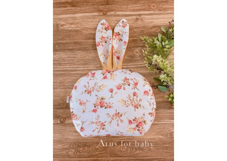 W zestawie płaska, dwustronna poduszka zajączek.