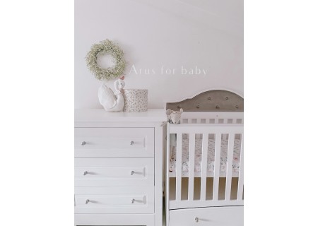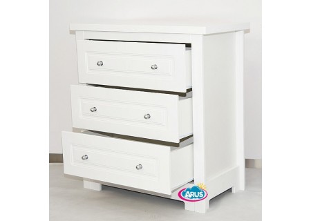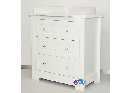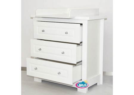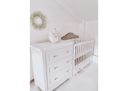 Komoda wykonana została w całości z płyty meblowej i płyty MDF w białym kolorze , stanowi idealna parę do łóżeczka Carmen