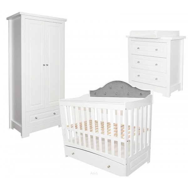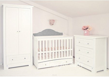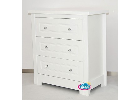 Komoda wykonana została w całości z płyty meblowej i płyty MDF w białym kolorze , stanowi idealna parę do łóżeczka Carmen