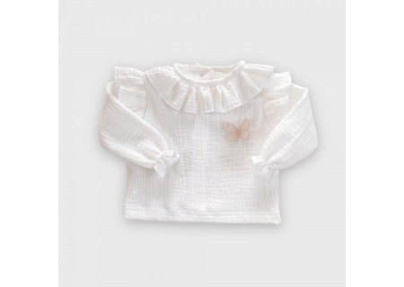 ♥ Śmietankowa koszula muślinowa z falbanką Butterfly of the valley