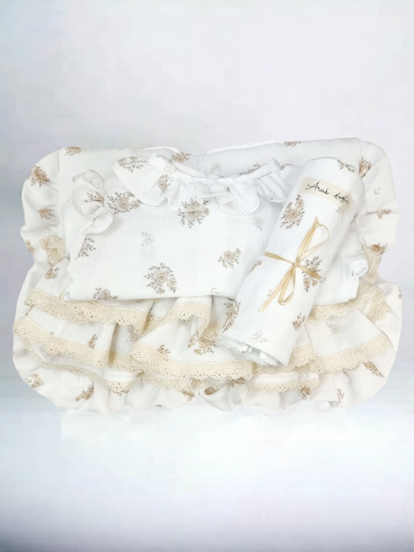 ♥ Spódnica/ bloomersy na szelkach z falbankami Cinnamon Roses muślinowa