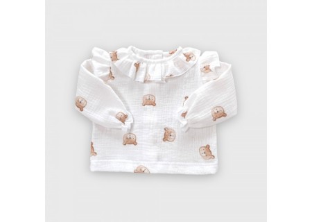 ♥ Koszula muślinowa Little Teddy z falbanką śmietankowa