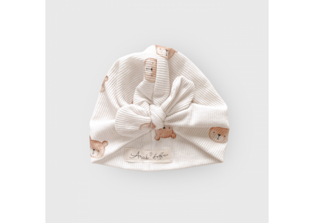 ♥ Turban z bawełny prążkowanej Little Teddy jasny beż