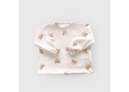 ♥ Bluzka prążkowana Little Teddy jasny beż dla dziewczynki