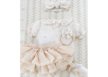 ♥ Spódnica/ bloomersy na szelkach z falbankami i koronką Butterfly of the Valley waniliowy beż
