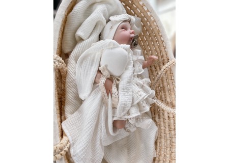 Wykonana z sto procent naturalnych tkanin -muślinu bawełnianego oraz bawełnianej koronki.