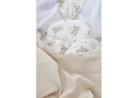 Poduszka Bunny, wykonana z tej samej tkaniny wafelkowej, nie tylko uzupełnia zestaw, ale także stanowi piękny element dekoracyjny. Jej unikalny kształt przywodzący na myśl uszy królika, z pewnością przypadnie do gustu zarówno dzieciom, jak i ich rodzicom.